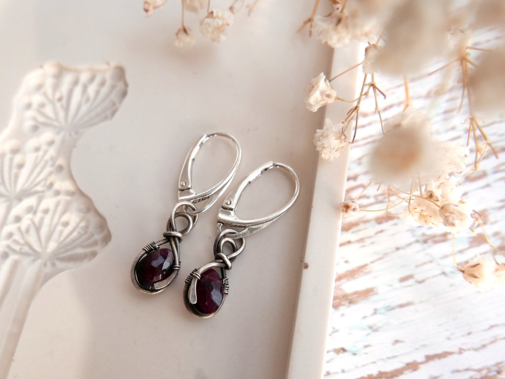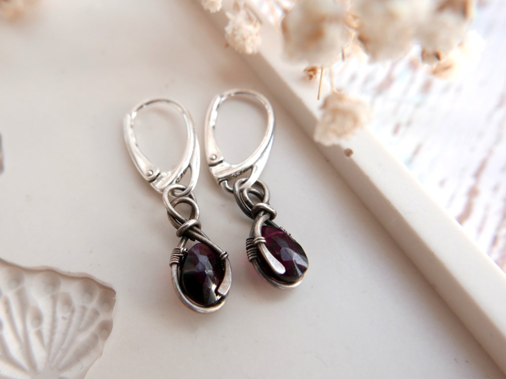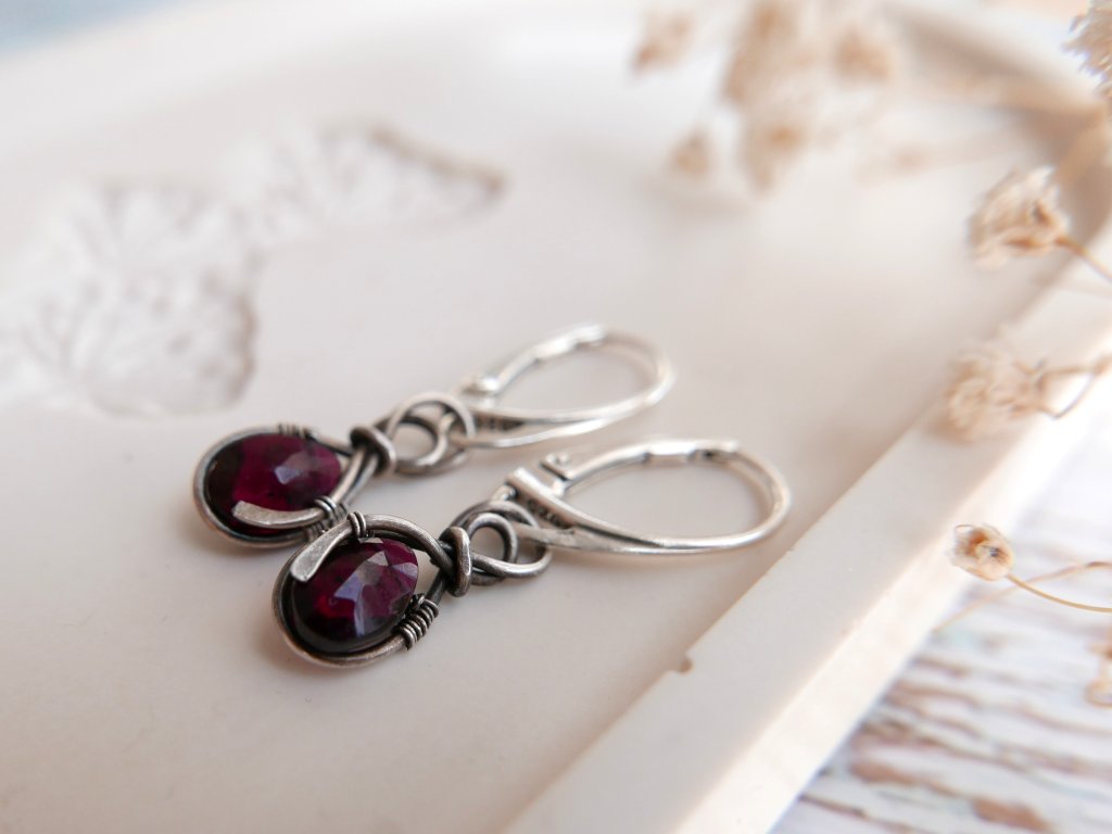 Náušnice ze stříbra a granátu. Jemné, luxusní, vhodné na denní nošení i třeba do divadla.