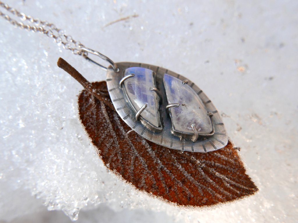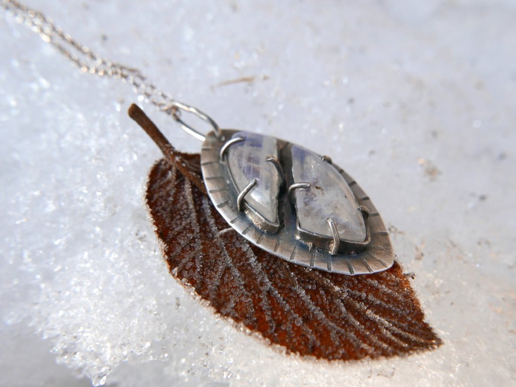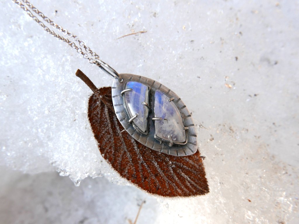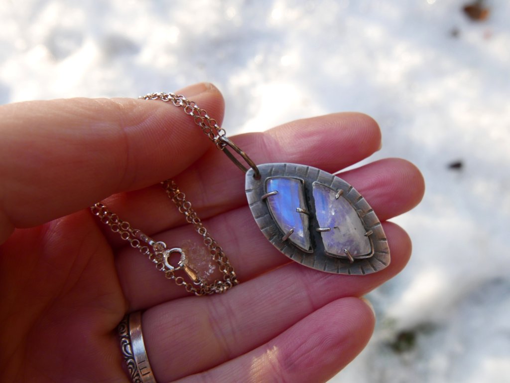 Tajemný šperk ve tvaru oka s měsíčním kamenem.