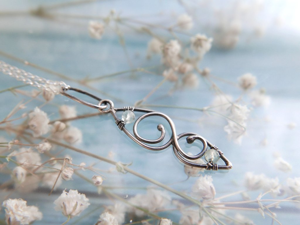 Jemný přívěsek ze stříbra ryzosti 925/1000 a světle zeleného prehnitu.