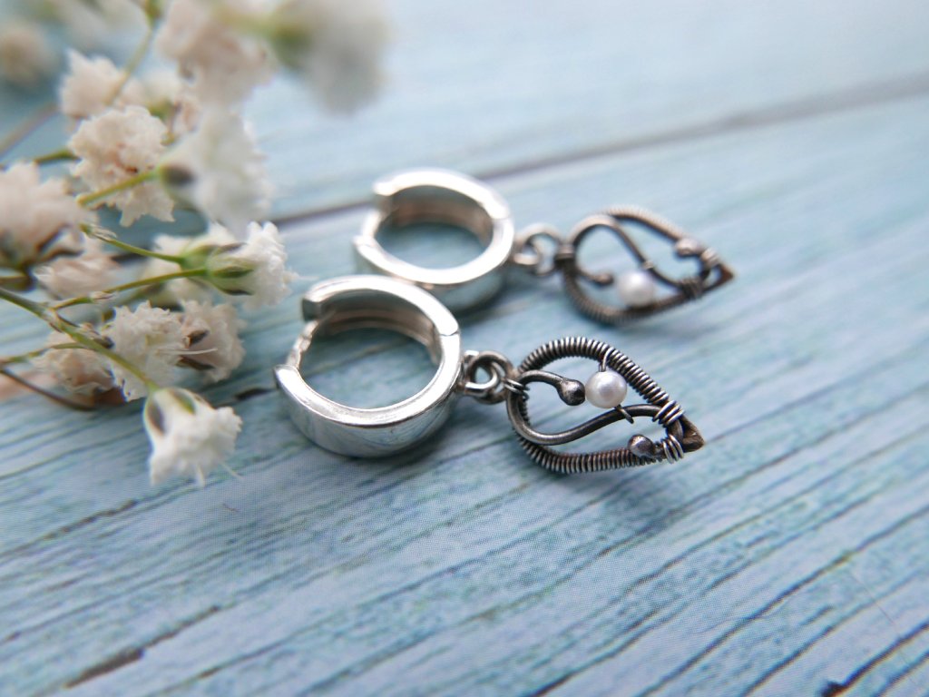 Jemné drobné náušnice ze stříbra ryzosti 925/1000 a bílé říční perly.